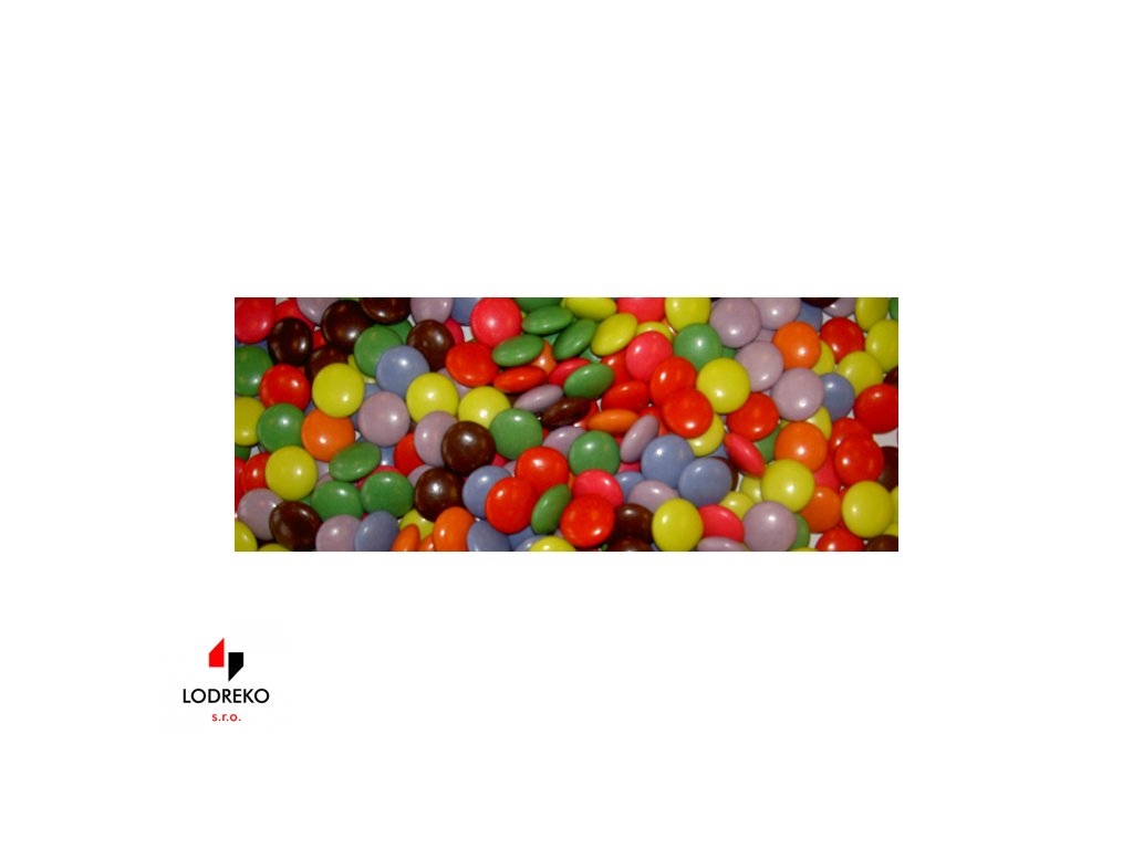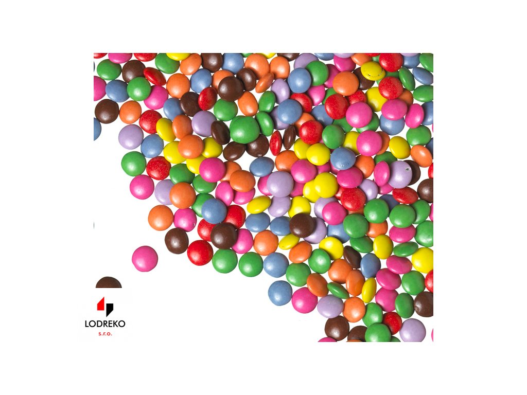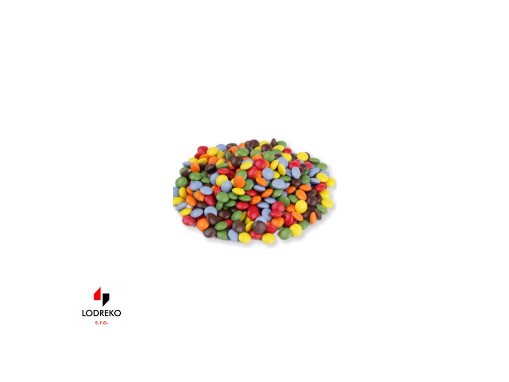 Složení: cukr, kakaová hmota, kakaové máslo, sušené plnotučné mléko, emulgátor (E322),leštící látka (E414, E903, E901, E904) barviva: E101, E120, E141, E160a, E162, E163, E171, E172